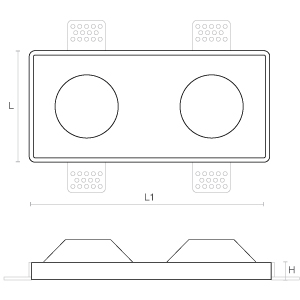 Typologie: Die eingelassene Gessi-Familie ist in mehreren Modellen erhältlich, alle ausgelegt zum Aufnehmen von ein oder zwei GU10-Lampen (Fassung separat zu bestellen). Komplett mit Lampenhaltespange. Eigenschalften: Diese "Rahmen" aus Gips erzeugen den überraschenden Effekt von Licht, das aus weichen Öffnungen in der Decke austritt. Ihre strukturelle Beschaffenheit, das Fehlen sichtbarer Metallelemente und die farbliche Anpassung an die Decke, in die sie eingelassen sind, tragen dazu bei, das Licht elegant in den Mittelpunkt zu stellen. Installation: Ausgestattet mit Laschen zur Befestigung an den Gipskartonplatten, in die sie eingesetzt werden, werden sie an den Seiten verputzt. Material: Gipsausführung mit integrierten Aluminiumflanschen für eine einfache und schnelle Installation. Anwendungen: Decken, bei denen Funktionalität und Ästhetik kombiniert werden sollen. Hinweise: Die auf dem Foto gezeigten Lampen dienen nur zur Veranschaulichung; Lampenfassung und Glühbirne sind nicht enthalten. Charakteristische Daten - Farbe: Weiß. Abmessungen - Abmessungen; L: 255 mm; L1: 130 mm; H: 44 mm. EU-Richtlinien - 2009/125/EC * Ecodesign; 2011/65/EU * RoHS; 2012/19/EU * RAEE; 2014/30/EU * EMC; 2014/35/EU * LVD; 2015/863 * Amending RoHS; 2017/1369 * Regulation for Energy Labelling; 2019/2015 * Regulation for Energy Labelling; 2019/2020 * Regulation for Ecodesign; 2021/340 * Amending Reg. Energy Labelling; 2021/341 * Amending Reg. Ecodesign. Produktstandards - CEI EN 55015:2020 (+A11:2020); CEI EN 60598-1:2022; CEI EN 60598-2-2:2012; CEI EN 61000-3-2:2019 (+A1:2021); CEI EN 61000-3-3:2014 (+EC1:2014/+EC2:2016/+A1:2021/+A2:2022); CEI EN 61547:2010; CEI EN 62031:2021 (+A11:2022); CEI EN 62471:2010; IEC/TR 62471-2:2009; CEI EN 62493:2015; CEI 34-141:2014. Logistik-Daten - Barcode einzelner Artikel: 8011905344092; Stückzahl pro VPE: 12; Minimale Verpackung: 1 / 12.