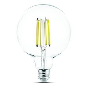 Gamma di lampade a LED "a filamento": microled deposti su supporto vetroso ed interamente ricoperti dalle polveri ai fosfori che ne uniformano, amplificano e diffondono la luce.